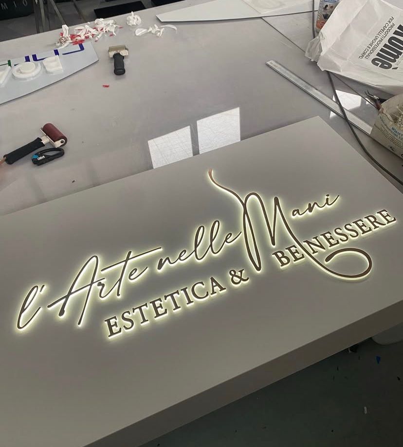 Questa tipologia di insegna non solo aumenta la riconoscibilità del brand, ma contribuisce anche a trasmettere un senso di professionalità e cura dei dettagli. Il plexiglass massello, insieme alla luce interna, trasforma un semplice pannello in un elemento visivo che cattura l’attenzione e comunica valore.